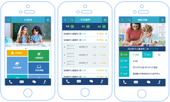 Ø网站配色合理,与所属行业有相关性,如幼儿教育采用暖色、绿色调;IT、汽修培训采用蓝色调等。