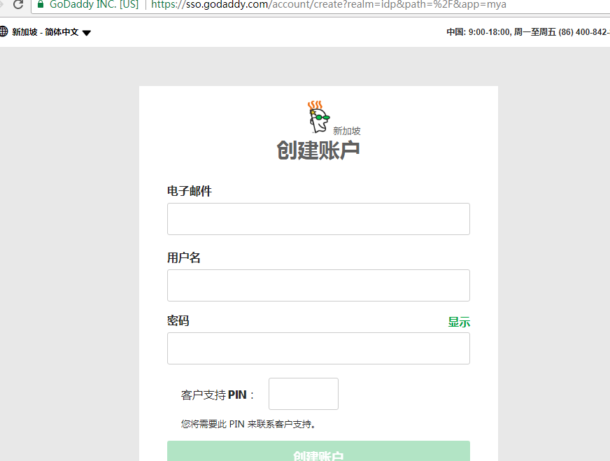 提示PIN必须是4位数字,PIN是联系godaddy客服服务等一些时候需要用到的.
